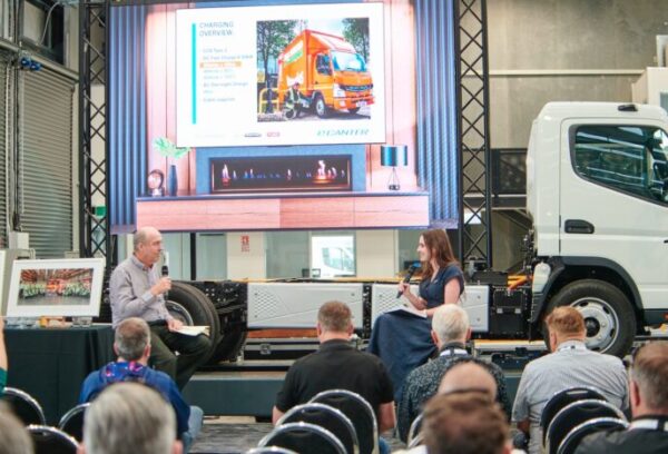 A special Fuso eCanter event was hosted by Keith Andrews Hamilton to commemorate about two years since the first of the electric light duty trucks arrived in New Zealand.