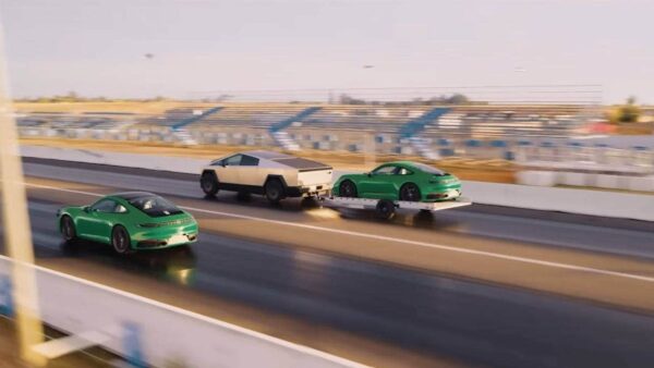 // Watch: Tesla’s Cybertruck beats a Porsche 911, while towing a Porsche 911