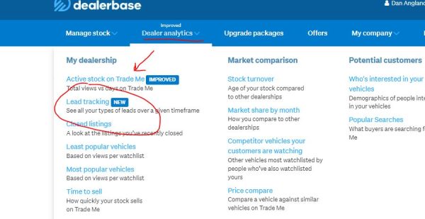 Login to Dealerbase, click Dealer Analytics, then Lead Tracking.